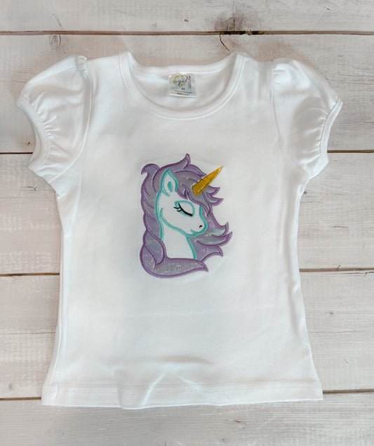 Unicorn Embroidered Applique Puff Sleeve T-Shirt
