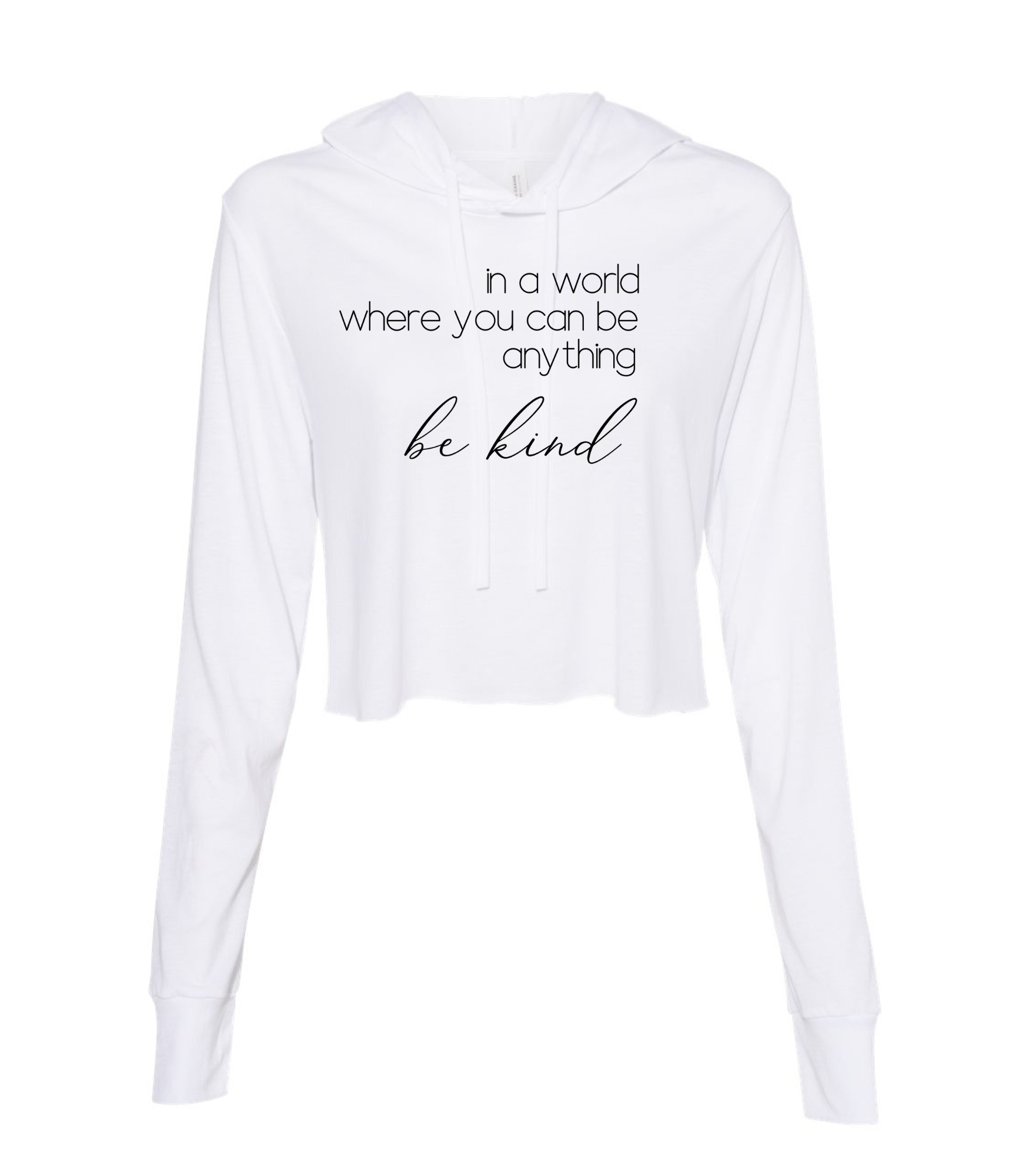 In a World Where you can Be Anything Ladies Short Sleeve T-Shirt. This easy-to-layer essential is everything you have been waiting for. A super-soft, long sleeve, cropped hoodie in awesome fashion colors. Made from 50% Polyester, super-soft 25% Airlume Combed and ring-spun cotton and 25% rayon. This t-shirt feels amazing all day long.